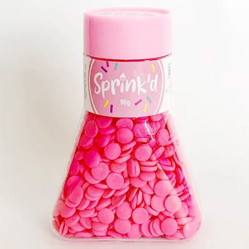 These Pastel Bright Pink Confetti Sequins 7mm Sprinkles by Sprinkd are large 7mm pink disc shape sprinkles great for decorating cakes, cupcakes & desserts. Each confetti sprinkle measures approximately 7mm. Packed in a convenient 90g bottle.