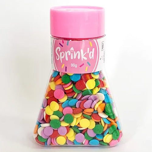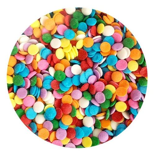 These Rainbow Confetti Sequins 7mm Sprinkles by Sprinkd are large 7mm disc shape sprinkles great for decorating cakes, cupcakes & desserts. Each confetti sprinkle measures approximately 7mm.