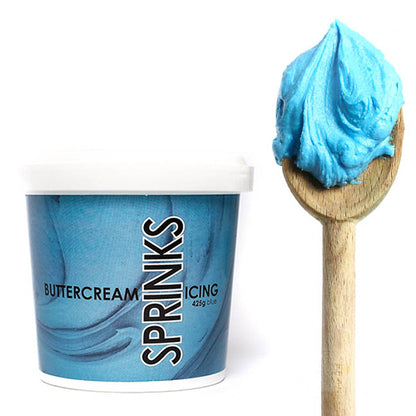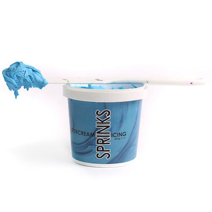 This Sprinks Buttercream Icing Blue is a light and delicious Australian Made buttercream ready to use icing from the pot, or whip it to make it even more voluminous and light. A more contemporary meringue style and lighter than traditional comparatives we know you will love its vanilla taste complimenting even the lightest of sponges.