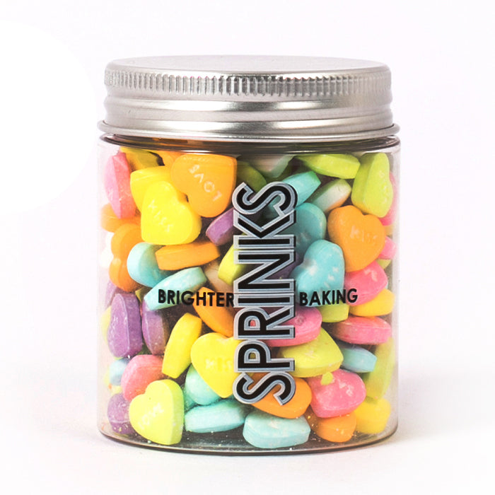 This Sprinks My Sweetest Heart Sprinkles includes a mix of heart shaped sprinkles in rainbow colours. It is packed conveniently in a 70g wide mouth jar for easy access. Great for decorating your Valentines Day themed cakes, cupcakes and desserts.