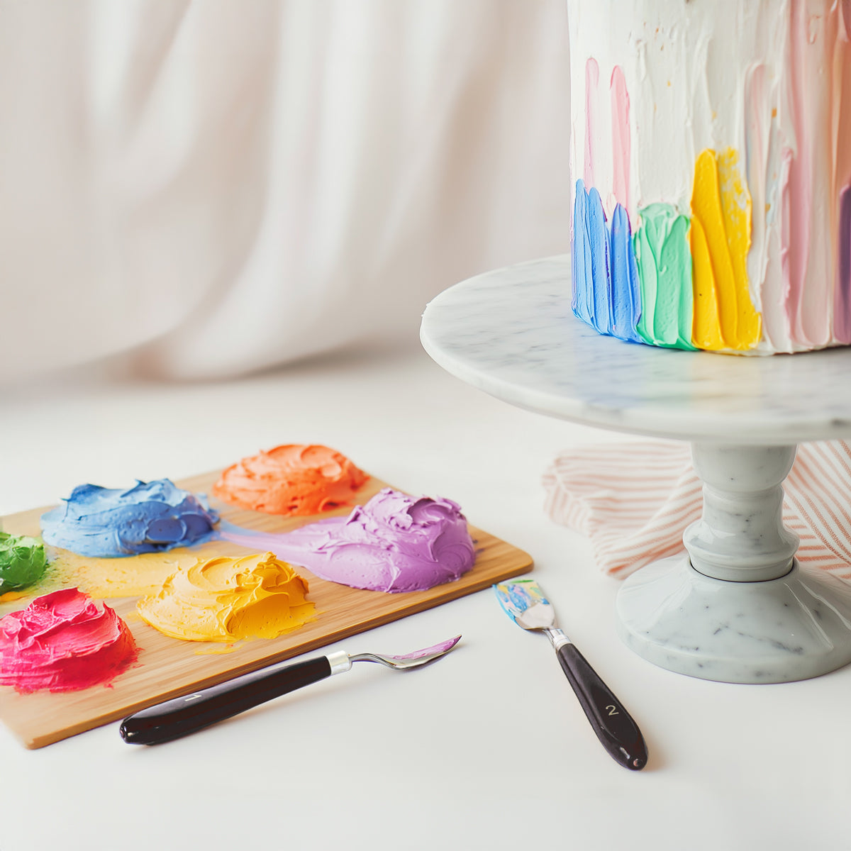 - You can also use the edge of the palette knife to create patterns or designs on the cake's surface.