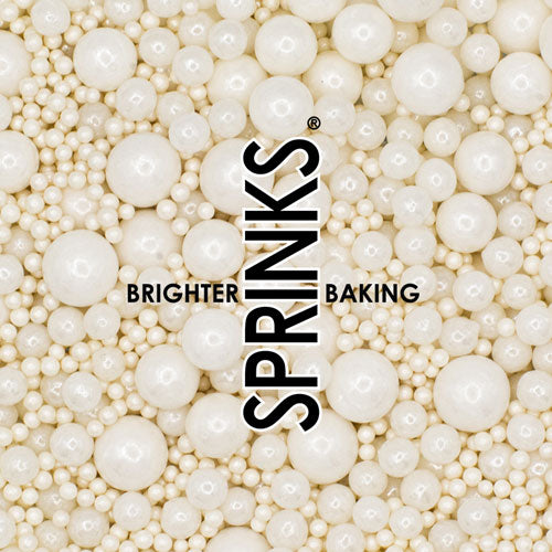 This Sprinks Pearl White Bubble Bubble Sprinkles features a mix of pearl white round pearls in various sizes. Comes in a convenient 75g wide mouthed jar.