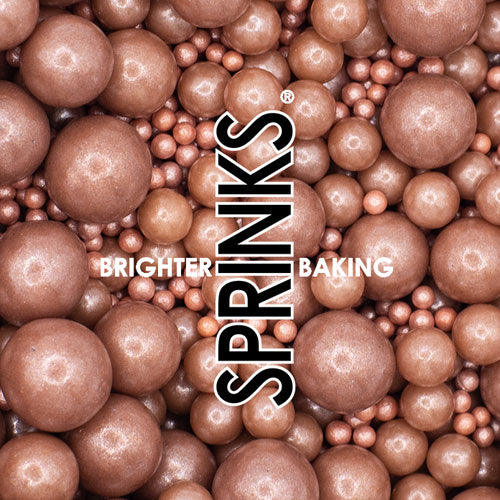 This Sprinks Rose Gold Bubble Bubble Sprinkles features a mix of rose gold round pearls in various sizes. Comes in a convenient 75g wide mouthed jar.