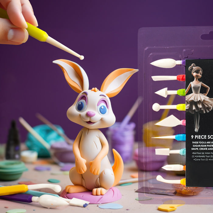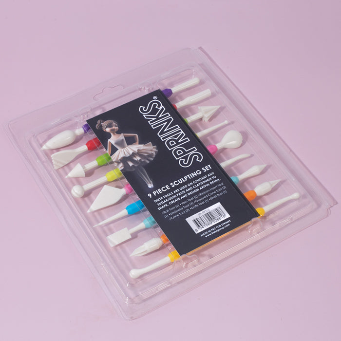 This Sprinks double-sided 9-piece modeling tool set for sugar craft is a comprehensive kit designed to assist cake decorators, sugar artists, and bakers in creating intricate and delicate designs using sugarpaste, fondant, gum paste, and other edible mediums. Each tool in the set serves a specific purpose, allowing for precise shaping, detailing, and sculpting of sugarcraft creations.