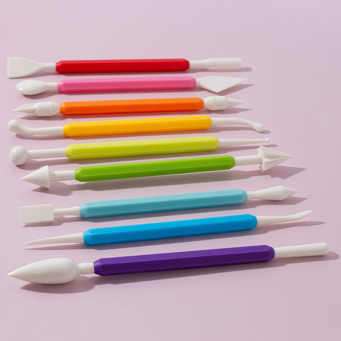 The SPRINKS double-sided 9-piece modeling tool set offers a versatile selection of tools for sugarcraft enthusiasts and professionals alike. With its variety of shapes, sizes, and functionalities, this tool set enables users to bring their creative visions to life with precision, detail, and finesse. Made with BPA free quality plastic, the tips are removable for easy cleaning and storage.