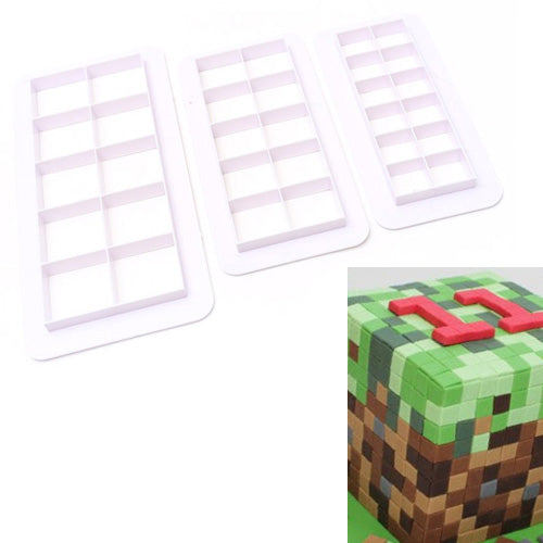 This square multi cutter set includes 3 plastic cutters to allow you to quickly and easily cut out 10+ square shapes. Allows you to easily create uniform geometric patterns on cakes, cupcakes and cookies. Made from food safe plastic.