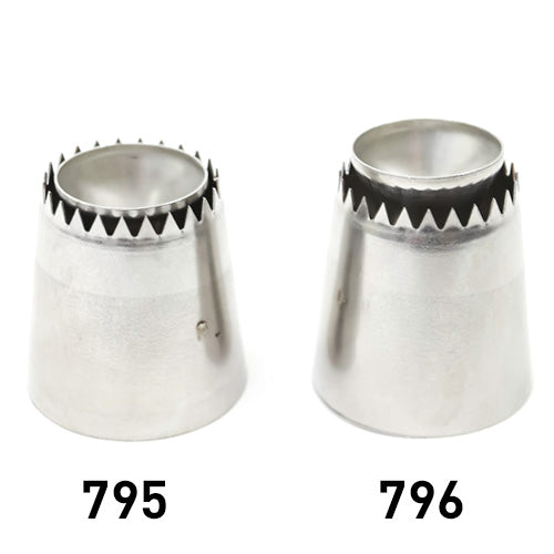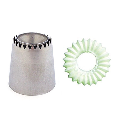 This Sultane Piping Tip 795 is a large specialty tip designed to create a round shell like ring with a hollow center. Great for icing, meringue, pastry, cookies and more.
