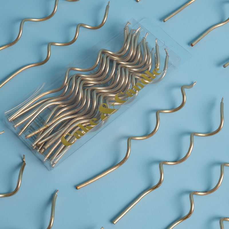SWIRLY Cake Candles - GOLD - 13cm - Pack of 16