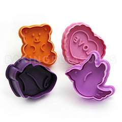 This Valentine plunger cutter set includes 4 Valentine themed spring loaded plunger cutters which can be used to cut and emboss cute VaThis Valentine plunger cutter set includes 4 Valentine themed spring loaded plunger cutters which can be used to cut and emboss cute Valentine shapes: