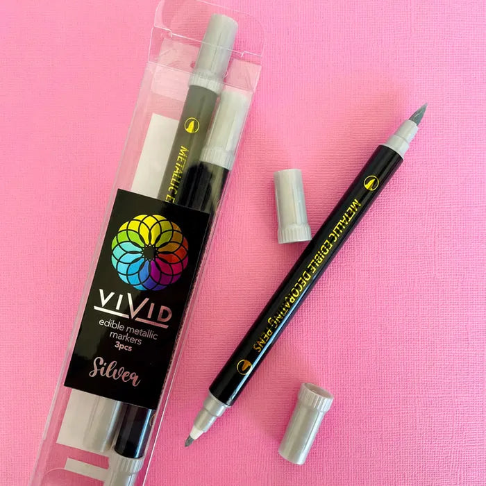 Vivid Edible Metallic Food Pen Markers Silver | 3 Pack