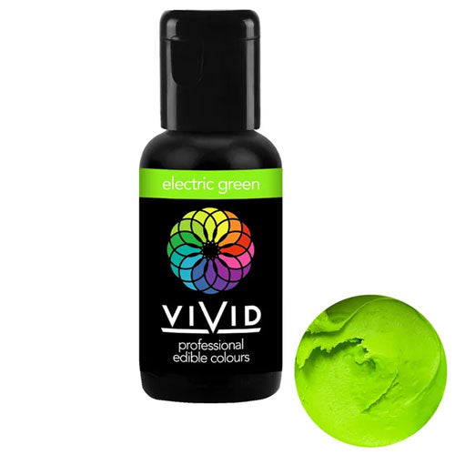 This Vivid Gel Colour Electric Green is a ready to use gel food colour. Simply mix into fondant, icing, dough, buttercream and more for intense, VIVID Colour! Halal & kosher suitable. Comes in a 21g bottle. Made in China.