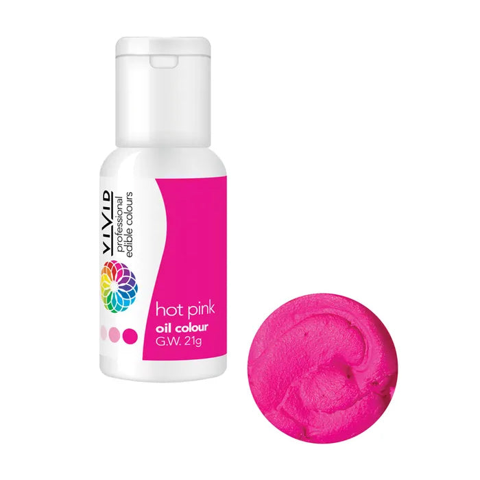 This Vivid Oil Based Colour HOT PINK is a ready to use food colouring specially made to mix with oil based mediums such as chocolate, ganache, fondant, icing, buttercream, dough and more. If you want a stronger colour, add more drops. For a lighter shade, use fewer drops. Mix the drops into the batter slowly until you get the colour you want. Comes in a 21g bottle. Made in China.