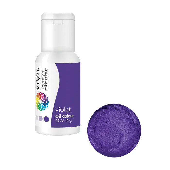 This Vivid Oil Based Colour VIOLET is a ready to use food colouring specially made to mix with oil based mediums such as chocolate, ganache, fondant, icing, buttercream, dough and more. If you want a stronger colour, add more drops. For a lighter shade, use fewer drops. Mix the drops into the batter slowly until you get the colour you want. Comes in a 21g bottle. Made in China.