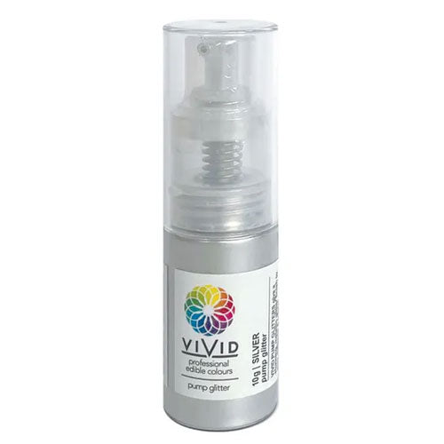 This edible Silver Shimmer Dust Spray by Vivid is great for giving your your cakes and decorations a metallic silver shimmer finish. This non-aerosol edible glitter pump spray is effective and simple to use. Simply hold the spray approx 10-20cm away from the cake and spray in short, gentle bursts.