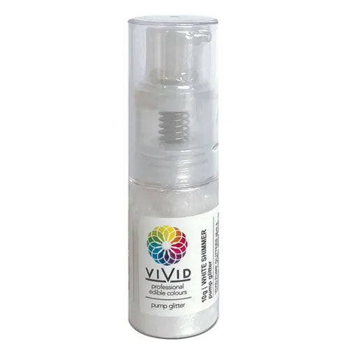 This edible White Shimmer Dust Spray by Vivid is great for giving your your cakes and decorations a metallic white shimmer finish. This non-aerosol edible glitter pump spray is effective and simple to use. Simply hold the spray approx 10-20cm away from the cake and spray in short, gentle bursts.