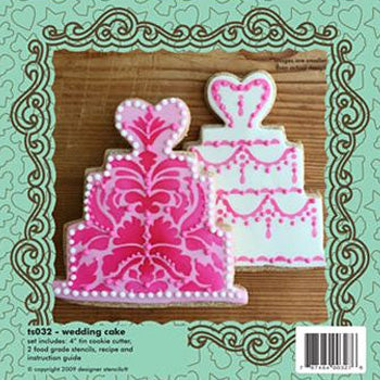 This Wedding Cake Cookie Cutter and Stencil Set by Designer Stencils is a fun and easy way to decorate cookies for wedding showers or receptions. This set includes a wedding cake cookie cutter and two reusable food grade stencils. The wedding cake cookie cutter measures 4 inches width & height and 7/8 inches deep and is made out of sturdy tin. Instructions included.