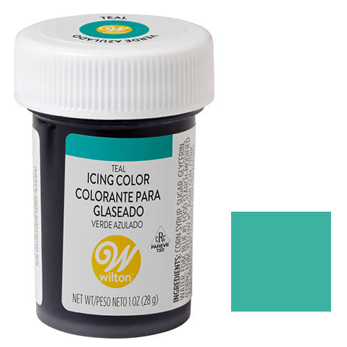 This Teal Icing Colour by Wilton is a concentrated gel formula that is made to produce deeper, richer colour by adding just a small amount. You will find a rainbow of colours which you can blend together to create your own shade. Works great with buttercream, royal icing, fondant and more. Certified Kosher. Comes in 1 oz bottles.