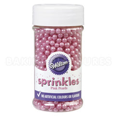 These Wilton Natural Pink Sugar Pearls are a great way to decorate your cupcakes, cakes & desserts. They are all natural and does not contain any artificial colours or flavours. Comes in a 80g shaker bottle. Pearls measure between 3mm to 5mm.