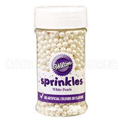 These Wilton Natural White Sugar Pearls are a great way to decorate your cupcakes, cakes & desserts. They are all natural and does not contain any artificial colours or flavours. Comes in a 80g shaker bottle. Pearls measure between 3mm to 5mm.
