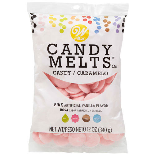 Microwave Wilton Pink Candy Melts in microwave-safe container at 50% power or defrost setting for 1 minute. Stir thoroughly. Continue to microwave and stir at 30 seconds intervals until smooth and completely melted.