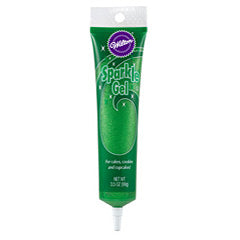 This Wilton Sparkle Gel in green is a ready to use green gel with a tinge of sparkle. To use simply squeeze the tube and start decorating. Great for writing messages, drawing dots, accents and more. Comes in a 99g resealable tube. Certified kosher.