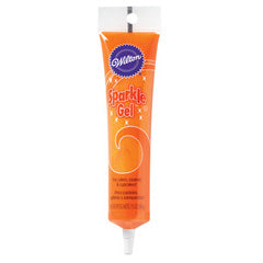 This Wilton Sparkle Gel in orange is a ready to use orange gel with a tinge of sparkle. To use simply squeeze the tube and start decorating. Great for writing messages, drawing dots, accents and more. Comes in a 99g resealable tube. Certified kosher.