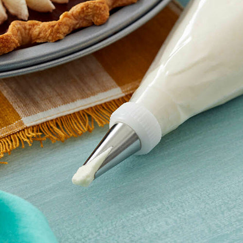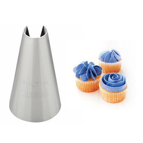 This Wilton St Honore Decorating Piping Tip is a great piping buttercream frosting, meringues, whipped cream icing and more. This tip creates a petal design that can be used to make lovely florals, swirls, zig-zags and more. Use it to make swirl roses or layer petals on top of each other for an elegant buttercream flower bud. Traditionally used in French pastry, this tip helps give dimension to your cakes, cupcakes and other treats.