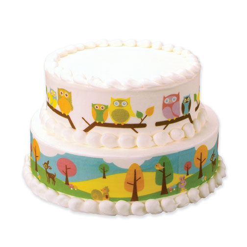 Developed to bring design to the side of the cake, designer prints match up from strip to strip and can easily be wrapped around your desserts. They are also great for cake crafting and can be cut into shapes and pieces or applied to fondant, gumpase to create uniquely patterned bows and plaques. Woodland Animals Edible Designer Prints give the look of a high-end cake without the added time and labor, and enable decorators of all skill levels to easily craft beautiful cakes and confections. When placed on food, edible images absorb moisture and become soft, blending in seamlessly with your culinary creation.