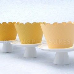 12 pieces of lovely yellow light textured cardstock cupcake wrappers. Yellow Light cupcake wrappers will fit standard (6.35cm base & 5.2cm height) cupcakes.
