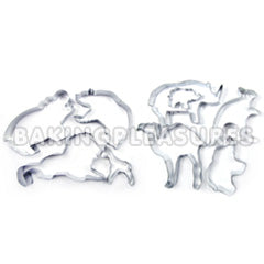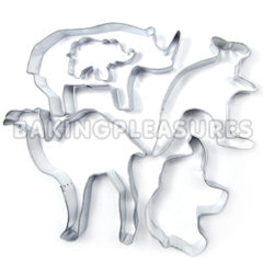 Animal theme cookie cutter set. Contains 7 cookie cutters & 2 mini cookie cutters. Made out of sturdy silver tin.